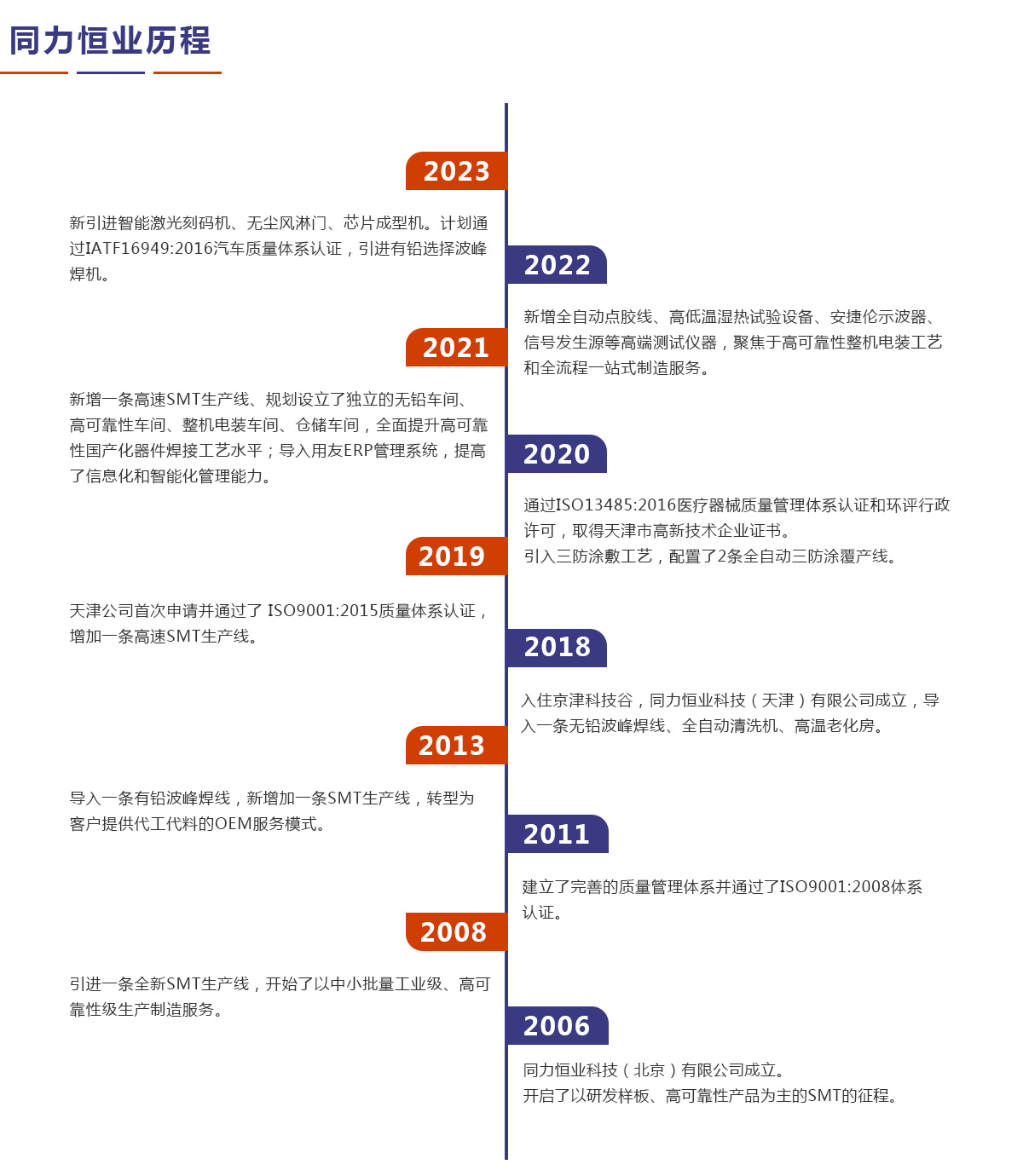 同力恒業(yè)科技成立于2006年,專業(yè)從事電子制造服務(wù)(EMS),專注于為客戶提供產(chǎn)品開發(fā)、工藝設(shè)計(jì)、物料配套、精密貼裝、插件焊接、三防涂敷、整機(jī)電裝、測(cè)試?yán)匣约鞍b運(yùn)輸、售后維修等整個(gè)供應(yīng)鏈解決方案。公司定位于高可靠性及中高端產(chǎn)品電子制造服務(wù),在通訊導(dǎo)航、儀器儀表、醫(yī)療設(shè)備、汽車電子等領(lǐng)域具有豐富的一站式制造服務(wù)經(jīng)驗(yàn)。